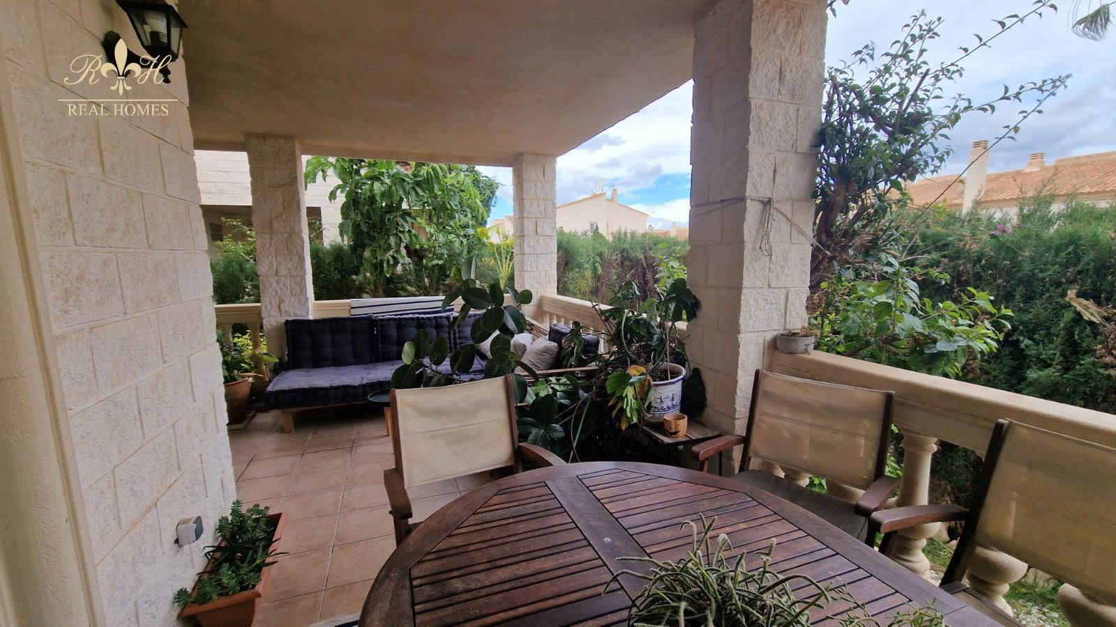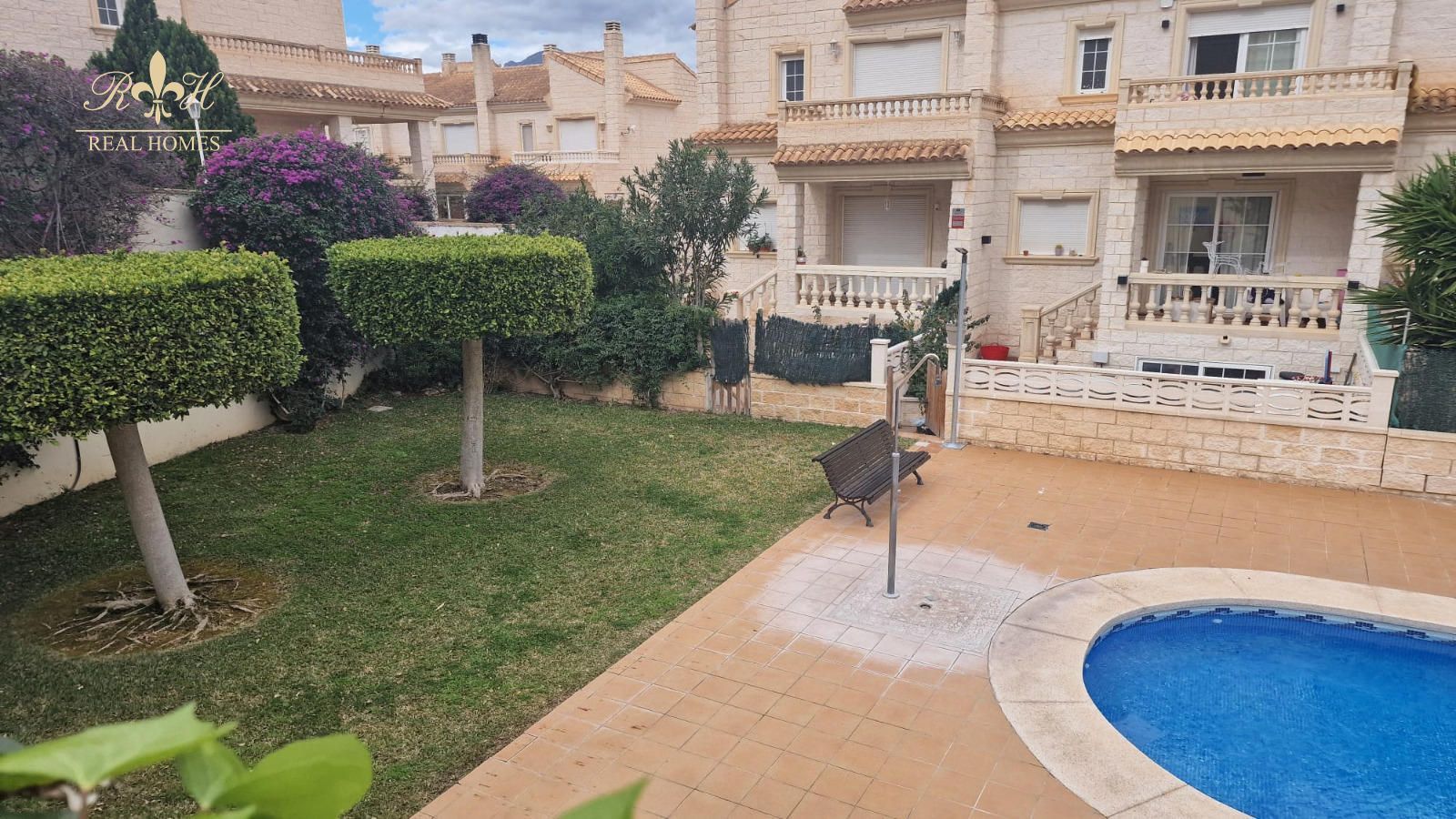 La comunidad cuenta con una magnífica piscina de diseño, rodeada de vegetación, palmeras y agradables zonas de descanso, ideal para disfrutar del clima mediterráneo en un ambiente relajado y exclusivo, con las montañas como telón de fondo. La vivienda dispone además de jardín privado y una amplia terraza cubierta, perfectos para disfrutar del exterior con total privacidad mientras se aprovechan unas zonas comunes de primer nivel.