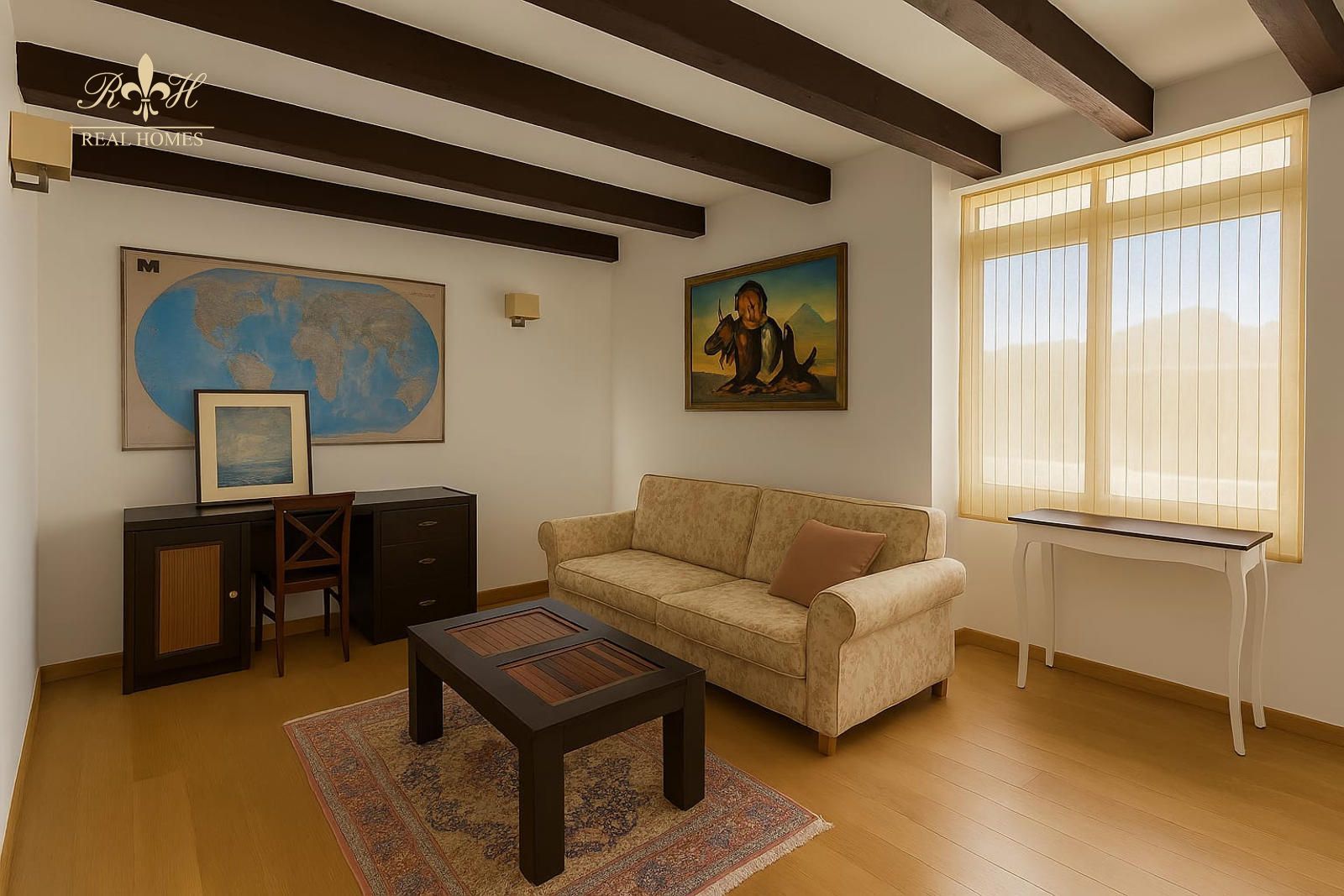 En el interior, la casa ofrece espacios amplios y muy luminosos, con un estilo cálido y acogedor que se realza con vigas de madera vistas y detalles de calidad. La propiedad dispone de 4 dormitorios, varias terrazas y un sótano polivalente, ideal como gimnasio, sala de ocio, despacho o biblioteca.